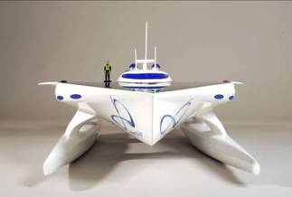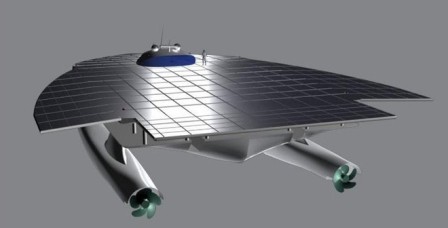 船的上方设有面积达500平方米的太阳能板,围绕着中间凸起的驾驶舱。