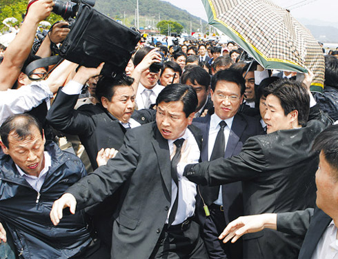 此外,郑东泳议员夫妇也只能打道回府。“卢爱会”会员和村民们对走向村子入口的郑议员大喊“叛徒”,并阻止他们吊唁。被拦住去路的郑议员也只能返回。