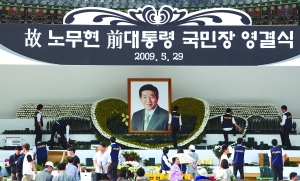 此后各界人物将向卢武铉画像献上白菊花,对这位前总统作最后的道别,最后将鸣炮致哀。