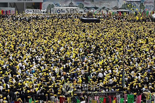 中新网5月29日电 据韩联社报道,29日的首尔广场“人山人海”,大批韩国民众自愿前来参加前总统卢武铉的遗体告别仪式。