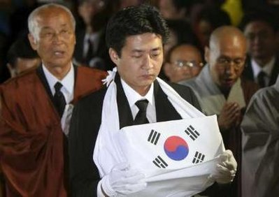 卢武铉的国民葬遗体告别仪式29日在首尔景福宫举行。韩国总统李明博、前总统金泳三和金大中、现任、前任政府高级官员,外国驻韩使节以及海外吊唁使节、遗属以及葬礼委员会成员等三千多名人士参加了遗体告别仪式。