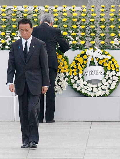 日本首相麻生太郎在发言中表示:“日本今后将继续坚持‘无核三原则’,并率先在国际社会中积极呼吁废除核武器和实现永久和平。”(记者 张国清)