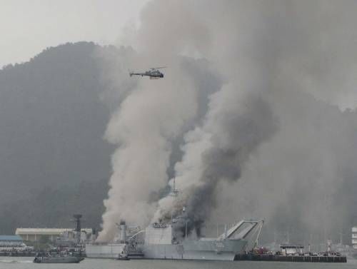 这也是该军舰第二次发生大火;2002年,它也在同一地点遭大火狂烧。根据观察火势的猛烈程度,这次遭受破坏的程度比之前严重。