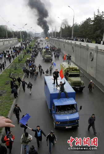 中新网4月8日电 当地时间4月6日开始,数千名吉尔吉斯斯坦反对派示威者在首都比什凯克市中心集会游行,并与防暴警察发生冲突,逐渐演变成骚乱,造成数百人伤亡。反对派扣押政府高官,占领部分政府机构以及国家电视台,并称最终目的是要总统下台,夺取国家政权。吉总统巴基耶夫下令全国进入紧急状态,并宣布实行宵禁。