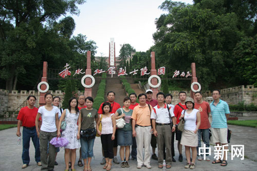 “再现四渡赤水,展现红军风采”采访团记者们参观赤水红军烈士陵园。 作者:杜燕 王兆寰