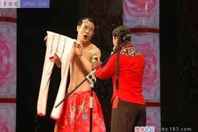“临时加塞儿”进来的小品名字叫《我要当明星》,节目编导就是赵本山。故作娘娘腔的“小沈阳”的表演异常火爆,包袱笑料一个接一个地抖出来,一会儿学刘德华,一会儿学阿杜。老赵临时“空投”的这个小品从形式上看上去感觉有点像剧场里的热场戏,但场上气氛火爆。