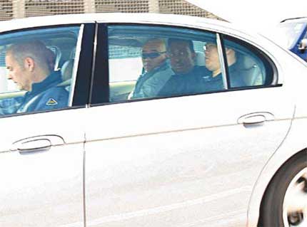 陈冠希获安排由特别通道离开机场,在保镖护送下驱车直往九展记者会会场。图片来自香港东方日报。
