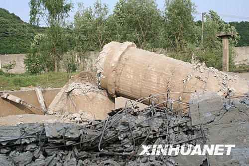 水均益:现在朝方的人员带领我们来到刚才爆炸的现场,在实地勘察一下,看看爆炸的效果。这里就是刚才我们看见的爆炸前有大概30米高的,大概10层楼高的宁边核设施的冷却塔,我们现在来到现场看到已经成了一片废墟。应该说从我们这种距离的目测来看,这个爆炸的是非常成功的,因为已经使得整个的冷却塔彻底夷为平地,也就是说从某种意义上来讲这个冷却塔不可以再工作,有没有办法再修复。