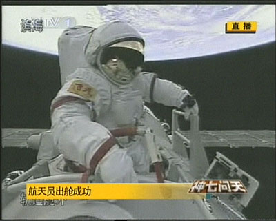9月27日16时44分许,“神七”航天员翟志刚走出舱外开始实施出舱活动。