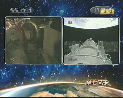 快讯:神七航天员翟志刚正打开返回舱舱门 准备出舱