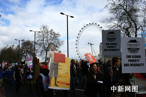 数万人伦敦游行示威 吁G20领导人"以人为本(图)