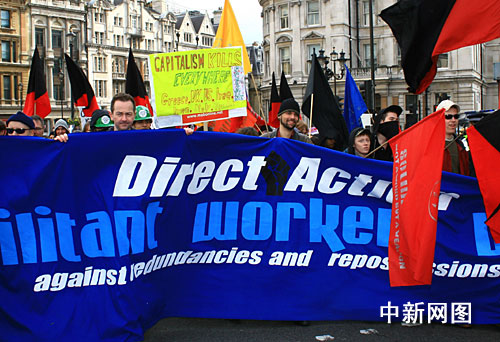 数万人伦敦游行示威 吁G20领导人"以人为本(图)