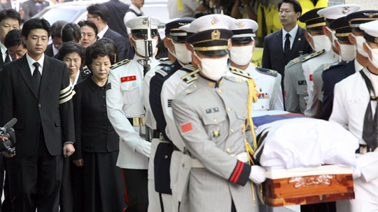 共同担任卢武铉葬礼委员会委员长的韩国国务总理韩升洙和前总理韩明淑朗读吊辞。