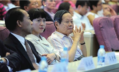 诺贝尔物理学奖获得者、美国能源部部长、华裔,朱棣文的三重身份吸引了大批清华学子,诺奖得主杨振宁和夫人也到场旁听捧场,能容纳三百人的报告厅座无虚席,过道都站满了慕名前来的同学。11点,朱棣文准时现身,尽管天气炎热,他仍然正装穿扮,白色衬衫、深色西装、深色领带。