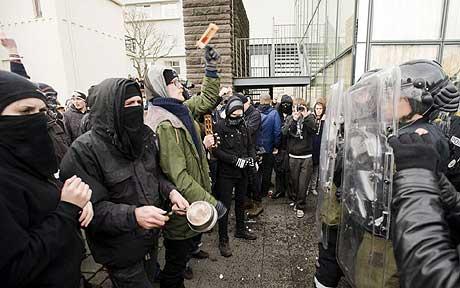据星岛环球网报道,示威者在冰岛首都雷克雅未克国会大楼附近聚集,国营电台的消息说,有20人被捕。冰岛多间银行欠下庞大外债,拖累国家财政崩溃,预期今年经济会大幅收缩,失业率上升。
