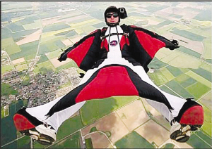 据悉,队员们所穿的“飞翼服”一件造价1000美元,它形状酷似蝙蝠侠所穿的外衣,在双腿、双臂和躯干之间缝制了大片紧密结实的尼龙织物,从而形成一对可以充满空气的“翅膀”将飞行者托起,让其在缓慢下降的同时也能自如调整航向。一旦降落到距地面900多米处时,队员们就打开“飞翼服”上的2个降落伞,然后安全落地。此外,队员们头上都将佩戴了一个头盔和摄像机,从而将空中表演时的画面拍摄下来。
