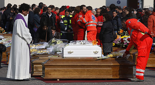意大利总理贝卢斯科尼与政府领导人和罗马天主教廷高级教士共同出席在葬礼仪式上。