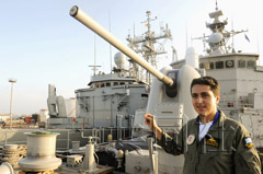 本次公开的是欧盟多国舰队的旗舰、希腊的“普萨拉”号护卫舰。希腊海军的有关人士向记者介绍了舰桥及舰载直升机。