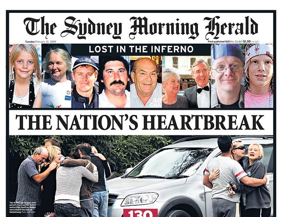 《悉尼先驱晨报》认为,此次火灾是澳大利亚最严重的自然灾害之一,并建议将2009年2月7日作为“国家哀悼日”。他们还将这场火灾与世界大战、大萧条以及巴厘岛爆炸案等相提并论。