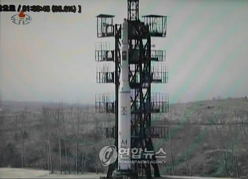 另外朝鲜中央电视台7日公开了5日发射的运载火箭发射场面。这是发射火箭第三天公开发射记录影像。朝鲜1998年发射光明星1号时,时隔5天公开了发射记录影像。