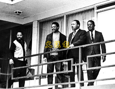 马丁路德金(右二)1968年在孟菲斯这间旅馆的露台被枪杀。