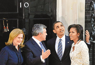 米歇尔陪同丈夫到唐宁街做的第一件事,便是与英国首相伉俪共进早餐。