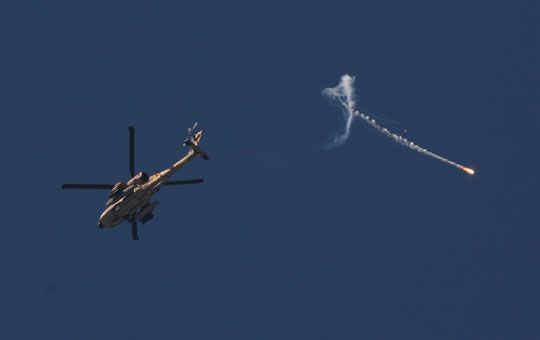 目击者称,在加沙城东部传出巨大的爆炸声,以色列士兵还与巴武装人员发生了激烈枪战。武装直升机在空中盘旋。