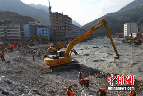 自8月8日以来,武警水电部队500余名官兵和130余台大型机械设备日夜连续奋战在舟曲白龙江堰塞体抢险一线,他们采取“挖、装、运”相结合、调运长臂反铲深掏、人工安装铁丝笼固定护坡等作业方式,疏通河道,加快白龙江存水泄流速度,尽快消除洪水隐患。