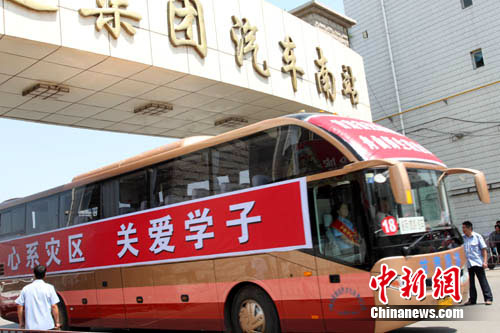 中新网兰州8月27日电 (记者 张玉玺)27日下午1时许,26辆旅游大巴从兰州始发,驶往舟曲,准备在28日上午转运首批舟曲异地就学的第一批1000名学生和60名老师到兰州就学。