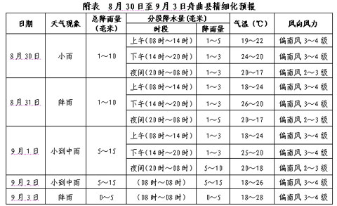 8月30日,舟曲县及白龙江流域有小雨或阵雨。