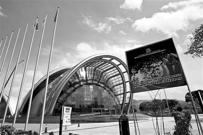 昨日,特立尼达和多巴哥首都西班牙港,国家表演艺术中心沐浴在阳光下,该项目由中国援建。新华社记者 张加扬 摄