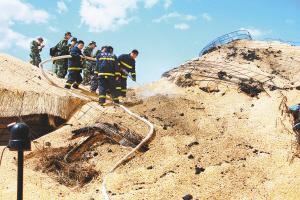 6月1日,消防官兵在中储粮林甸直属库清理火灾事故现场。