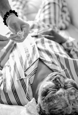 5日,从事故中脱险的44岁汉子夏维刚躺在市中心医院334号病房内,灼伤的脸上涂满药膏。大火发生时夏维刚在安全地带,返回火场救人时才被烫伤,他们抬出的工友有30多个。