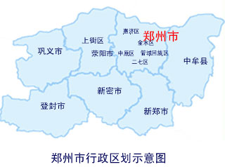 【区划】辖区6个、县级市5个、县1个。分别是:中原区、二七区、金水区、管城回族区、惠济区、上街区、荥阳市、巩义市、登封市、新密市、新郑市、中牟县