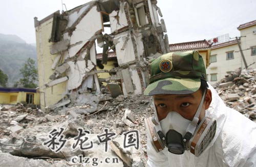 中午12时左右,在镇中心附近,尖锐刺耳的哨声,一声惊天动地的巨响过后,巨大烟雾腾空而起——这是解放军驻重庆某部队对一栋居民楼进行定向爆破,随后,身着防化服的战士进入,进行遗体清运和废墟清理。连日来,解放军战士对全县城的街道和土壤一直在进行消毒,进出车辆也要喷洒药水,将发生疫情的可能性降到最低。