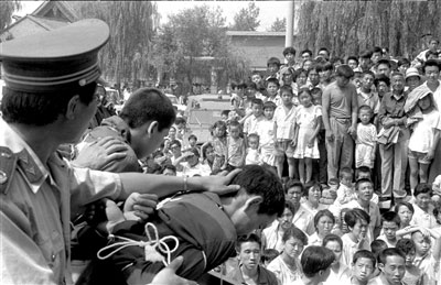 同时,留在人们集体记忆中的,还有公判大会。刘仁文说,当时被押到现场的犯罪分子,戴着画了大红叉的木牌,垂头丧气,听候着声势浩大的审判。台下,上万名群众都在围观,人们窃窃私语,“这不是谁谁家的儿子吗?听说抢了几千块钱,被判死刑了。”