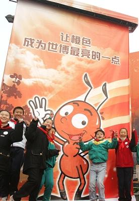 20日,代表志愿者的橙色成为申城的主打色。作为世博城市文明志愿者的一个集中活动日,逾5万名志愿者走上街头、走进社区,开展以世博宣传、交通文明和环境保护为主要内容的志愿服务活动,服务项目共计1000余个。在活动主会场——和平公园,以勤勤恳恳的小蚂蚁为原型的世博城市文明志愿者卡通形象“小志”正式揭晓,将在今后不到两年的时间内传遍上海的大街小巷。