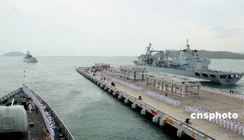图为中国人民解放军海军舰艇编队陆续驶离码头。中新社发 孙自法 摄