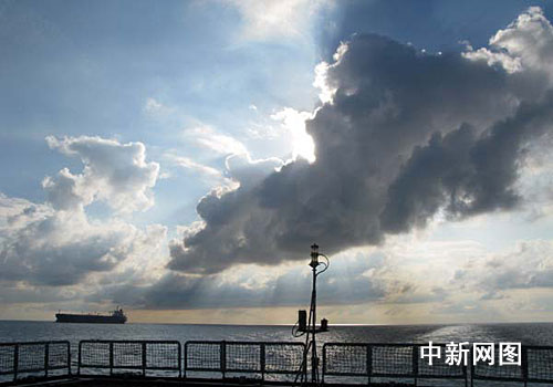 一边想着晕不晕船的事,一边信步从前甲板走到尾甲板,还顺手在甲板上拍了几幅“海口”舰航行马六甲海峡的风光片,瞅着拍摄到的海天相接、军舰劈浪、阳光与乌云“斗智斗勇”的场面,自我感觉相当不错。(完)