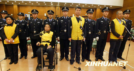 上午八时,本案开庭,能容纳四百人左右的审判厅座无虚席。田文华身着印有“石市二看”字样的黄色囚衣在两名女法警的带领下进入法庭,神情与往常无异。同案三人均由两名法警带领进入法庭,其中王玉良坐轮椅出庭。被诉单位三鹿集团,由工会主席冉伟光作为诉讼代表人出庭。