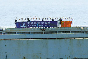下午2点30分许,两艘脱离危险的中国商船与“武汉”舰在亚丁湾某海域会合。此后,他们将在“武汉”舰的伴随护航下,安全驶向下一个目的地港口。经历了凌晨的惊心动魄,在茫茫无垠的大海上见到自己祖国的军舰,两艘商船上的船员再也掩饰不住兴奋和喜悦。“莲花海”号船员放起了鞭炮,“乐民”号船员高举鲜红的五星红旗,并打出了“中远航运欢迎您!”表达他们对祖国海军的真挚谢意。(田源 钱晓虎)