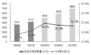 她表示,如果按药品消费占50%计算,药品市场将增加1666亿元的费用供给。随着医改的逐步推进,未来政府在医疗保障方面的刚性支出将逐年加大,即使在宏观经济周期性回落的情况下也能支撑居民医疗保健消费的增长,并从而带动药品消费的增长。