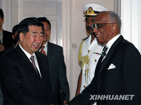 中新网2月18日电 据外交部网站消息,2月16日,巴巴多斯总督赫斯本兹在首都布里奇顿总督府会见了到访的中国国务院副总理回良玉。