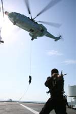 “我‘华光’号货轮在南海某海域遭劫持,你部速组成海上反恐机动编队,采取有效行动,确保船只和人员安全……”南海舰队某基地受令指挥的海军部队组织海上反恐战斗在南海打响。