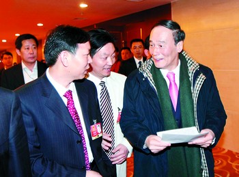 昨日下午4时许,王岐山参加完湖南代表团的讨论后,黄志明将准备已久的《关于成立国有社保银行的建议》交到王岐山的手中。“这是我一个基层代表的建议,希望对国家有所帮助,并请多多指导!”黄志明激动地说。“谢谢你,我会认真看的。”王岐山接过黄志明的建议笑着表示。