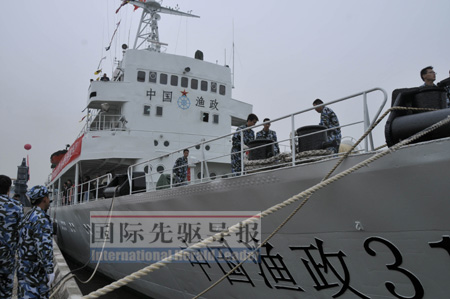 从3月10日离开广州市新洲中国渔政南海总队基地码头的那一刻起,渔政311船的一举一动所引起的关注超过了以往。据资料显示,该船的总吨位为4450吨、长113.5米、宽15.5米、续航力3500海里、持航50个昼夜、无限航区、配备现代化的通信导航设备GMDSS、最大航速可达20节。