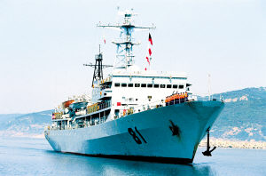 改变,成就一个巧合:郑和,是中国走向海洋的先驱。“郑和”舰,是中国海军走向开放的使者。整整20年前,“郑和”舰单舰跨越太平洋,进入西半球访问美国夏威夷。它,是第一艘越过180度子午线的人民海军军舰,也是中国海军出访次数最多的舰船之一。