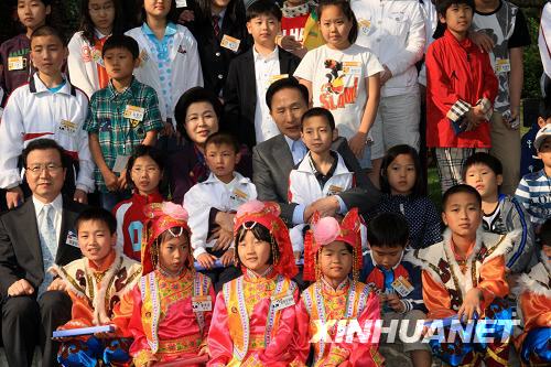 不一会儿,李明博总统携夫人金润玉一起走来,孩子们迎上前去。李明博一眼就认出了他在大地震发生后不久访问四川时曾抱过的魏月濠小朋友。李明博抚摸着魏月濠的头,亲切地说:“长大了不少。”