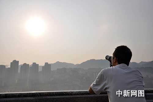 中新网重庆7月22日电 (记者 曹多然 郭晋嘉)8月22日8时07分左右,被天文学家称为是本世纪最恢宏壮观的日全食如约而至重庆,重庆市民纷纷用各种方式观看日全食。