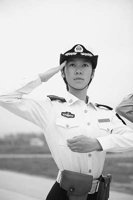 领队是方队的核心,训练中,她付出比普通队员更多的努力。那一声气贯长虹的“向右看”,对魏韵萧来讲,就是不小的挑战。作为女孩子,平时说话习惯柔声细气,可是身为领队的魏韵萧必须一改淑女形象,像男兵一样扯着嗓子大声下达口令,保证全方队在嘈杂环境下都能听见口令,确保整个方队令行禁止、整齐划一。